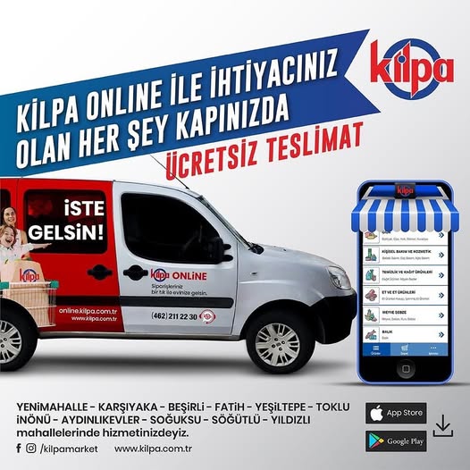 Kilpa yanınızda! Kilpa Online ile ihtiyacınız olan her şey ücretsiz teslimat avantajıyla kapınızda. Kilpa Online market uygulamamızı App Store’dan yada Google Play’den hemen indirin, siparişiniz kapınıza gelsin.